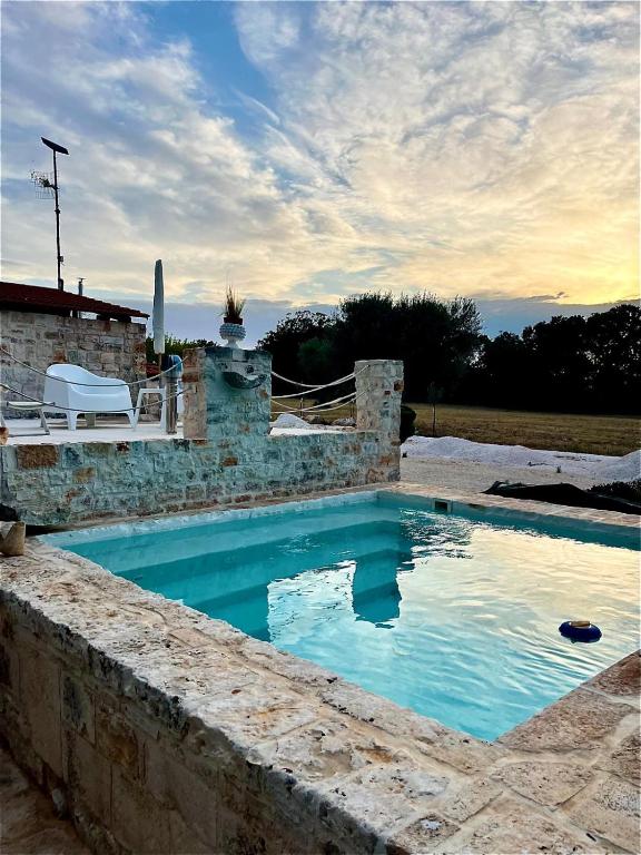Un’esperienza unica in due trulli autentici, immersi nel verde a pochi chilometri dal centro. Questa proprietà esclusiva è circondata da ettari di natura, ideale per chi cerca tranquillità e privacy. I trulli offrono una perfetta combinazione di charme rustico e comfort moderno: un bagno nuovissimo, una cucina completamente attrezzata, due camere da letto (6+2 posti letto in totale) e un salotto accogliente. All’esterno, una splendida piscina in pietra con idromassaggio riscaldato ti invita al relax, mentre l’ampio spazio verde ti permette di vivere la natura in totale libertà. La proprietà è situata in un’area sicura e protetta, perfetta per famiglie o piccoli gruppi che desiderano un soggiorno indimenticabile in un angolo di paradiso.